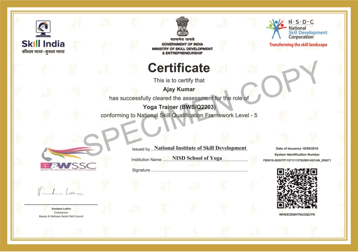 NSDC through this Scheme endeavors to create a sustainable and enabling skill training ecosystem by promoting the provision of market-led Fee-based Services. National Paramedical Sciences Society (NPSS) is an authorised NSDC Training Partner and offers NSDC fee-based courses under (National Skills Qualification Framework) programmes. On successful completion of program, a candidate will receive nationally recognized certificate by NSDC and SSC itself.